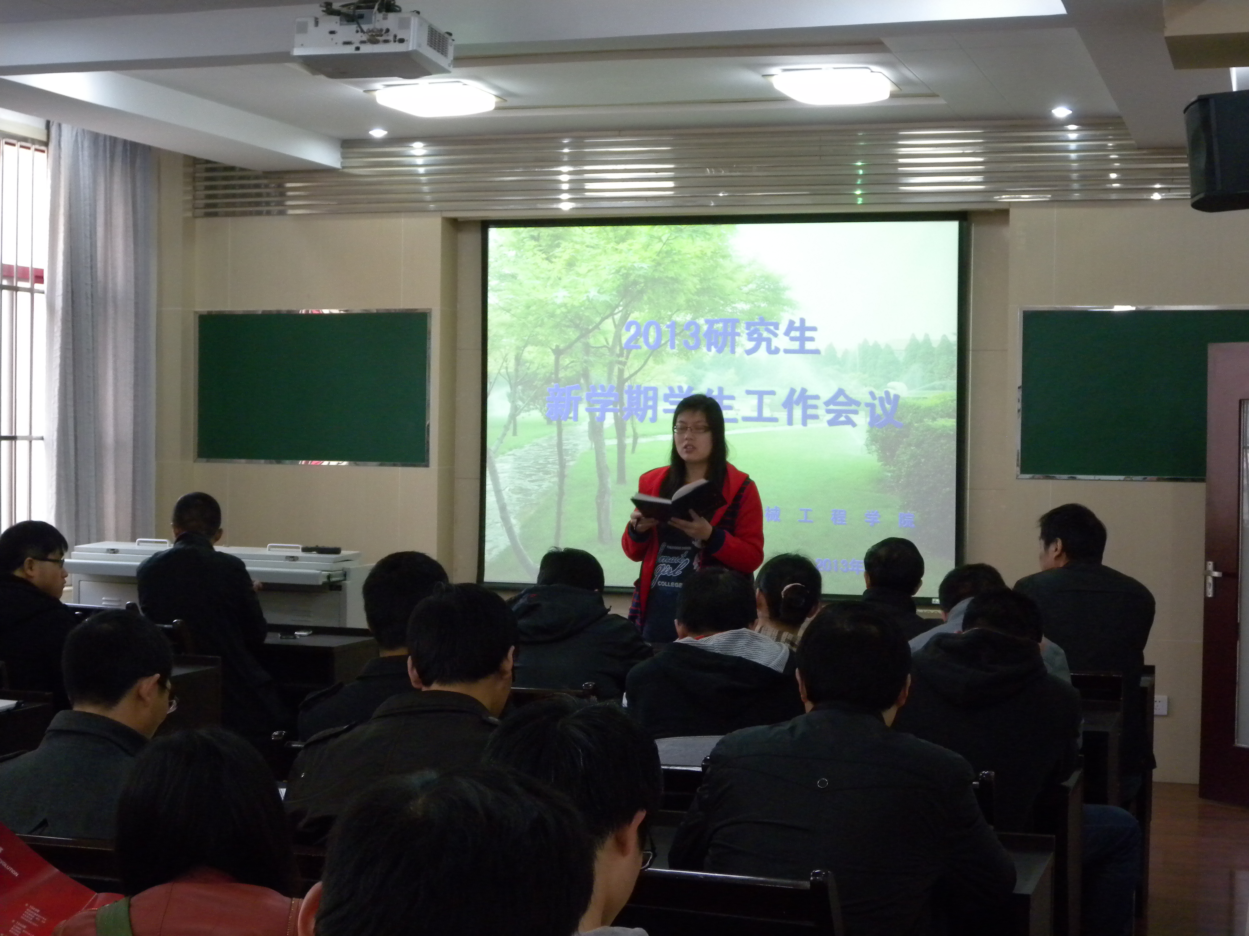 3月7日上午9:00,3003新葡官方网站在第三会议室召开2013年研究生新学期学生工作会议。参加会议的有3003新葡官方网站党委副书记杨鹏老师、学院辅导员雷励、王芬老师、研一、研二、研三各班班长和党支部书记及相关负责人。
