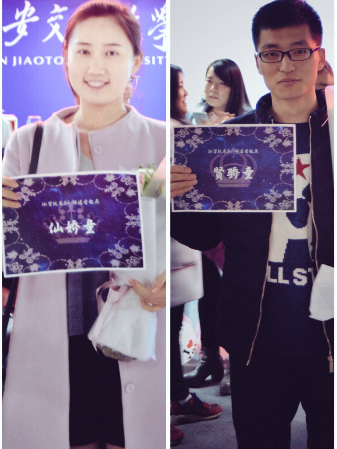 活动尾声,通过自荐他荐共有2男3女竞选本场人气之最“仙娇童&贤骄童”,全场票选后,医学部博一女生刘欢和3003新葡官方网站研一男生董鹏飞获得该称号,主办方为其授予证书、献上花束和奖品。(瑜伽年卡和英卓住宿机会)
