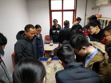 第二个参观的是心理沙盘室,老师在这里向同学们介绍了心理沙盘治疗是国际上一种很流行的心理治疗方法,沙盘游戏可以用于儿童或者成人,个体或者团体,沙盘游戏主要由沙子和人或者物的微缩模型两个部分构成,咨询者可以通过发挥自身的想象力利用道具摆出自己的心灵故事,从而使得心理咨询师或治疗师了解到咨询者无意识的一种表达与内心的一些认知,为后续的心理咨询与治疗提供有用的信息。在心理沙盘室,同学们都非常积极地提出各种问题,很多同学还发挥想象力摆出了一些心理沙盘的形状。