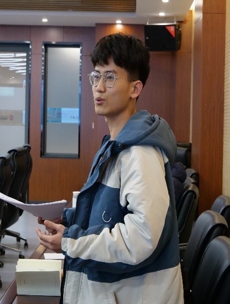 弓瑨、仇云硕、庞泽明、胡佳琪等同学先后结合自身的专业经历,从回归本朴,坚定入党初心;专注本职,提升学识素养;熟知大势,引领时代风华三个方面分享了自己的看法。