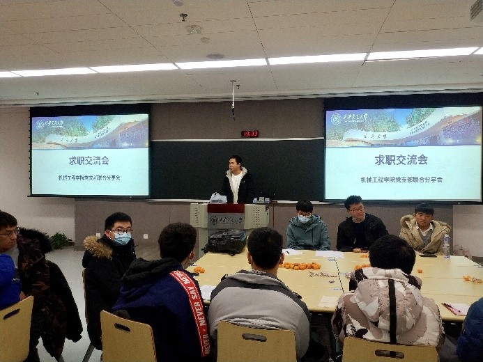 新年伊始,为贯彻落实好支部三会一课制度,加强党团班建设,强化支部同班级群众联系,切实解决同学们普遍关心的问题。支部瞄准目前同学们普遍关注的就业问题,为帮助班级同学们把握更多就业信息,消除班级同学的求职疑惑,同时也为加强班级同学与优秀毕业生之间的交流与沟通,2021年1月10日晚7:30,硕9005、硕9006、硕9009三个党支部在2-6004教室联合举办了3003新葡官方网站就业经验交流会。此次活动邀请了硕8010/11党支部在就业方面有代表性的师兄师姐以及能动学院的章剑羽师兄与同学们见面交流,分享自己在求职过程中的心得体会和宝贵经验。本次活动由硕9006党支部书记解国林主持,三个支部的部分党员、积极分子以及班级群众参与此次活动。