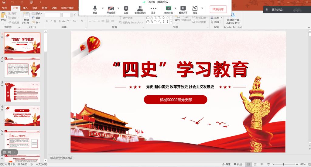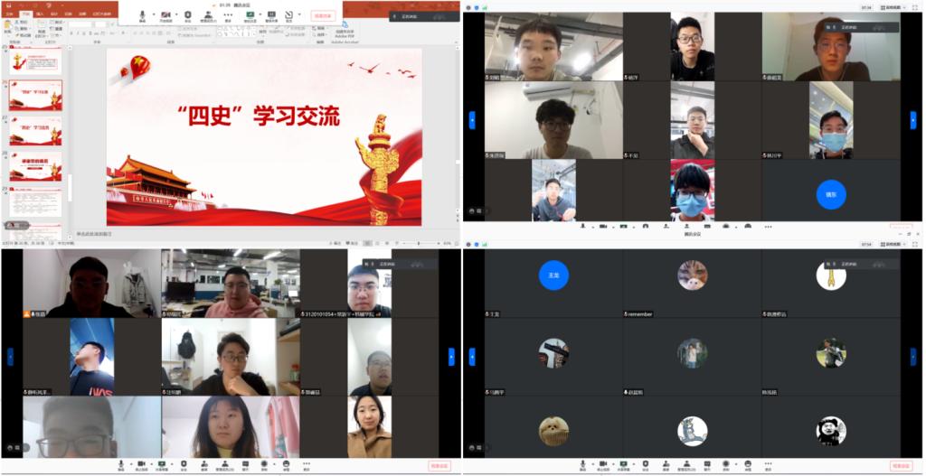 2021年3月6日,硕0002班党支部组织党员和入党积极分子进行以“牢记 ‘四史’,不忘初心”为主题的线上交流会,本次会议分为三个阶段:“四史”集中学习教育,“四史”学习心得交流和“四史”知识竞答。