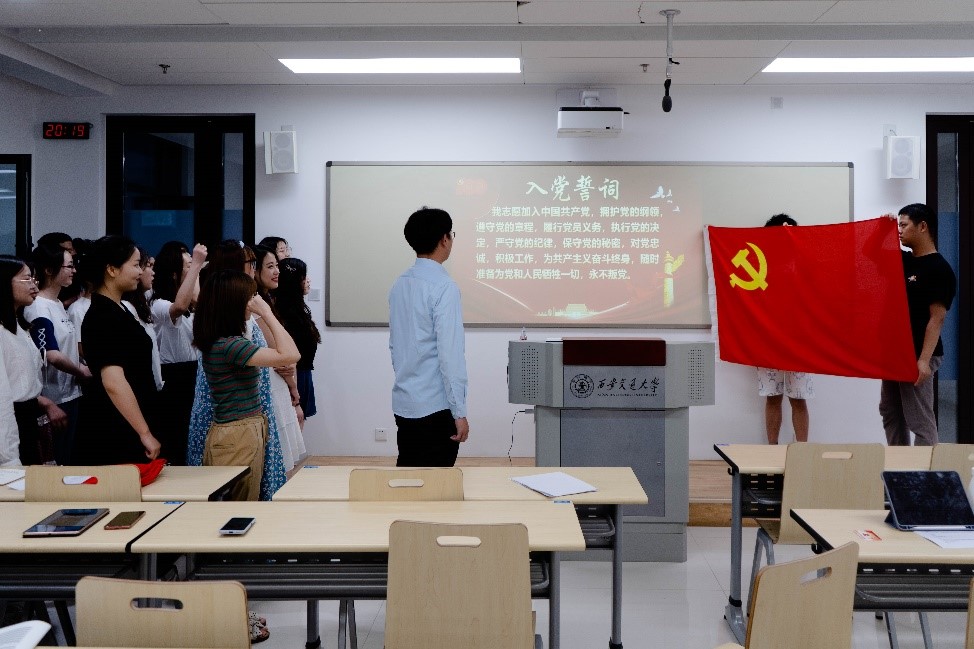 2021年6月18日,中共中央总书记,国家主席,中央军委主席习近平同志参观“‘不忘初心、牢记使命’中国共产党历史展览”时带领党员领导同志重温入党誓词。作为3003新葡官方网站新时代的学子,深入贯彻落实总书记讲话精神。在中国共产党百年华诞之际,参加学习的支部全体党员同志重温入党誓词,面对党旗庄严的宣誓,回忆自己的入党初心。