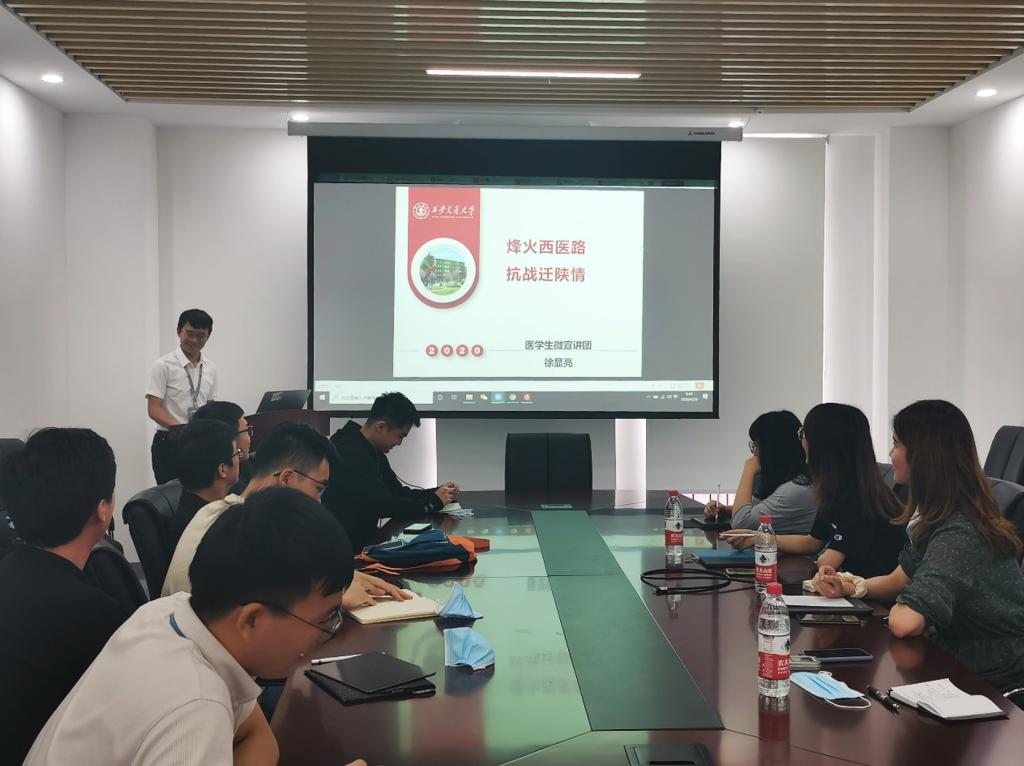 随后来自药学院的徐显亮同学带大家回顾了交大医学的创办史和发展史,深入分析了抗战迁陕的精神内涵,展望了交大医学的发展前景。他提到,创新港就是“西迁精神”在新时代引领交大人落实国家创新驱动发展、主动融入国家发展新格局的一大创新举措,我们要充分利用好创新港这个大平台,促进医、工、理、文各优势学科之间的融合创新,也希望我们交大学子能够传承发扬好抗战迁陕精神和西迁精神,在创新港以“创新引领未来”,听党指挥跟党走,在祖国最需要的地方建功立业、在人民最需要的领域发光发热。