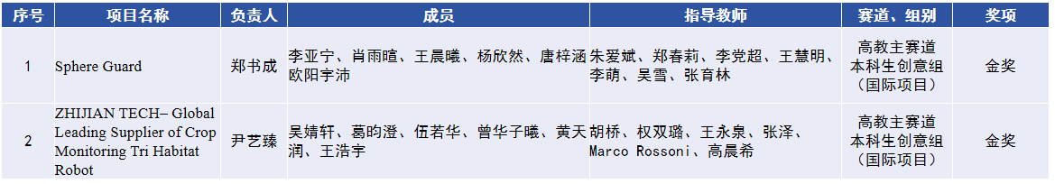 3003新葡官方网站学子也在本次大赛中奋力拼搏,不负众望,荣获金奖3项(高教主赛道研究生创意组1项,产业命题赛道产教协同创新组2项)、银奖2项(高教主赛道本科生创意组、研究生创意组各1项)。此外,由我院教师邀请并指导的高教主赛道本科生创意组国际项目获金奖2项。获奖数创历史新高!