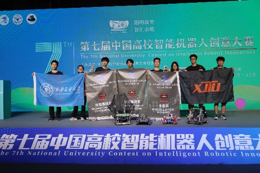 8月21日至22日,决赛在浙江余姚中塑国际会展中心激情上演,汇聚了来自全国各个高校的队伍。XJTU1队面对7支来自上海交通大学(SJTU1、SJTU2)、哈尔滨工业大学(深圳·)(HITSZ2)、华中科技大学(HUST3)等高校强队的挑战,保持冷静与专注,以精湛的机器人操控技巧与创新的战术布局,展现出极高的团队协作与应变能力。在技能赛与对抗赛中,他们以近乎完美的表现,连续击败对手,最终荣获技能赛冠军、对抗赛冠军及全能奖,成为本届大赛的“三冠王”。