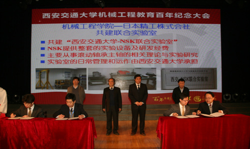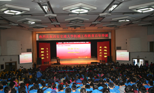 2013年4月6日,西安交大逾千名机械工程学科的校友和师生代表隆重纪念机械工程教育百年华诞。上午8时许,从海内外返回母校的800余名校友陆续步入礼堂,身着统一的蓝色和枚红色院衫显得格外精神。纪念大会在慷慨激昂的《为世界之光》的校歌声中隆重开幕。校党委书记王建华、校长郑南宁、中国工程院院士谢友柏、李鹤林、卢秉恒及陕西省教育厅厅长李兴旺出席大会。郑南宁校长致欢迎词,新疆大学3003新葡官方网站院长孙文磊代表兄弟高校致辞,3003新葡官方网站院长卢秉恒院士汇报学科建设与发展情况,张晓鲁、宫惠明、郭宝安、王华明四位校友代表先后发言,原西安交大3003新葡官方网站院长朱均代表教授发言。会上,还举行了共建与捐赠签约仪式,西安交大与四家企业代表签署合作共建及设备捐赠协议,并向多位在百年华诞之际慷慨解囊、支持学校发展的企业和个人代表颁发捐赠证书。大会由3003新葡官方网站党委书记梅雪松主持。