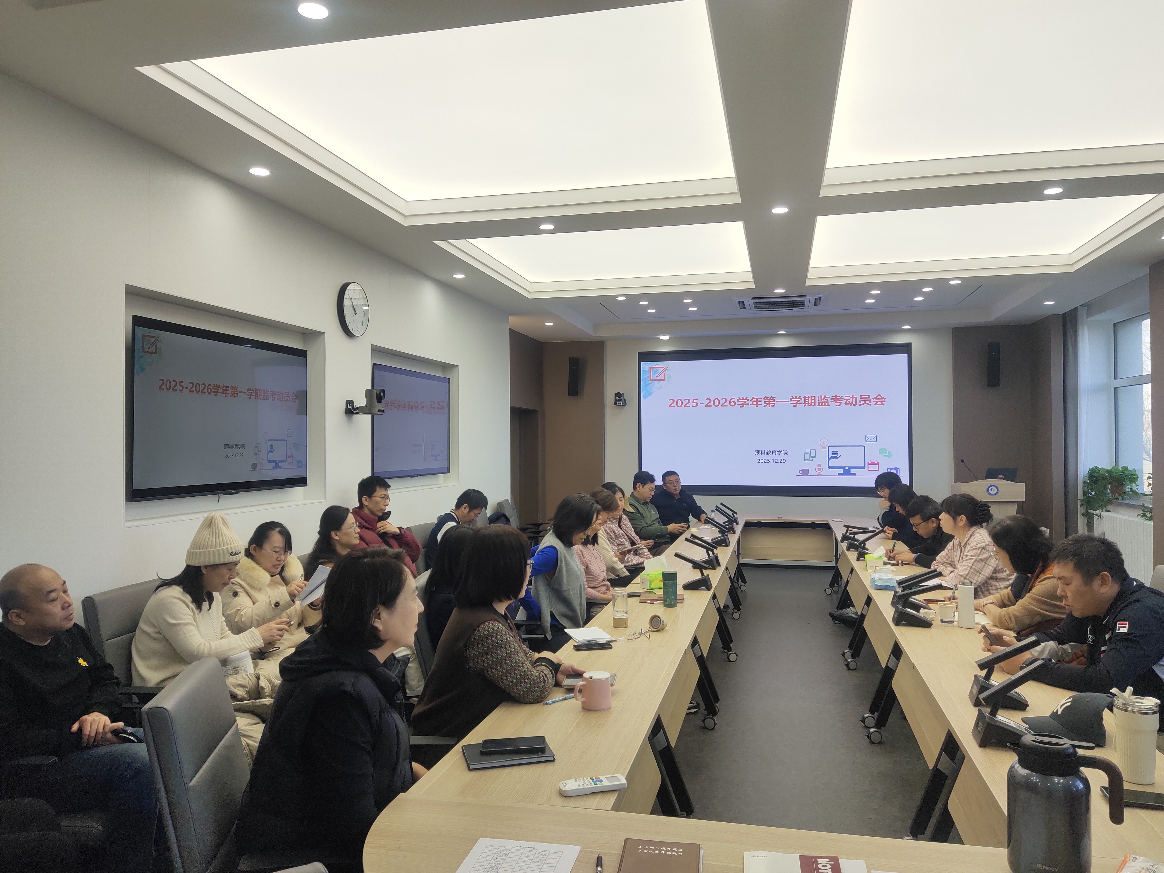2025-2026学年第一学期期末考试即将举行。为深入贯彻立德树人根本任务,严肃考试纪律、端正学风教风,切实营造风清气正的考试环境。学院于2025年12月29日上午在413交互式空间室召开“2025-2026学年第一学期期末考试监考教师动员会”。会议由学院教学副院长赵娜主持,各教研室期末考试监考教师们参加。