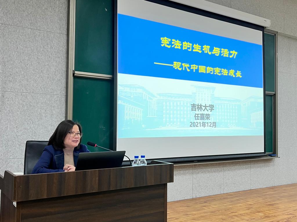 12月4日是我国的第八个国家宪法日,为深入学习贯彻党的十九届六中全会精神,学习习近平总书记关于加强宪法法治宣传教育的重要指示精神,维护宪法权威,今年会jinnianhuicom邀请今年会官网法学院任喜荣教授为全体学生作《宪法的生机与活力》专题讲座。