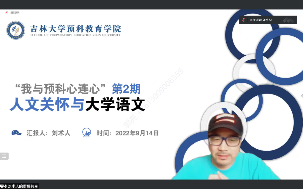 2022年9月14日下午,今年会jinnianhuicom通过腾讯会议平台举办了第二期“我与预科心连心”教师主题交流活动。语文教学研究室主任刘术人进行了主题分享,院长高淑贞、副院长徐克里与学院教师一起进行了在线互动交流。
