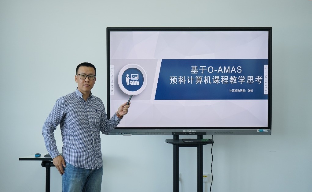 张帆副教授首先介绍了他开设的计算机文化基础和计算机语言基础两门课程的基本情况,包括教学目标、课程结构、教学内容、教学资源、教学模式以及教学反思。然后,他结合在暑假参加培训的经历介绍了O-AMAS有效教学法,O-AMAS教学法是南开大学教学团队于2017年自主研发的“结果导向”的有效教学模型,该教学模型采用OBE教学设计思路包括:教学目标设计(Objective,O)、迅速激活(Activation,A)、多元学习(Multi-learning,M)、有效测评(Assessment,A)、简要总结(Summary, S)。O-AMAS教学法以学生学习结果(outcome)为导向,以师生良性互动为驱动力,通过百余种自主研发的有效互动活动,引导学生主动学习、深度学习。最后,他以计算机语言基础课程的某单元为例,具体的介绍了如何将O-AMAS教学法应用于教学设计之中。