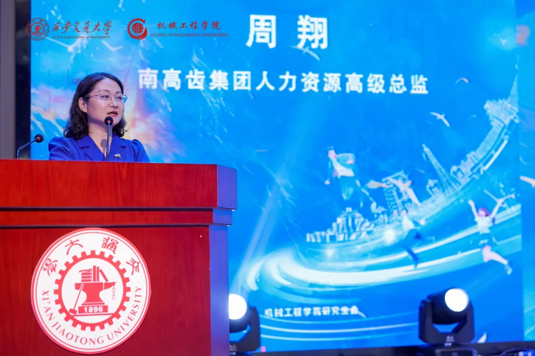 南高齿集团人力资源高级总监周翔同时作为嘉宾登台致辞,作为本场晚会的冠名赞助企业代表,周总监勉励大家始终以“机械之力”承载梦想,以“齿轮之精”追求卓越,并向即将步入社会的毕业生发出真诚邀请。