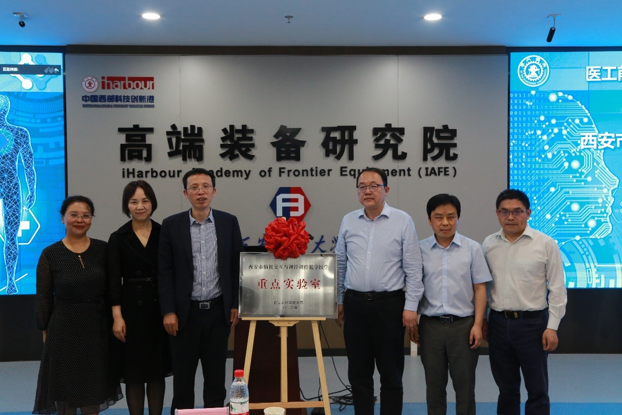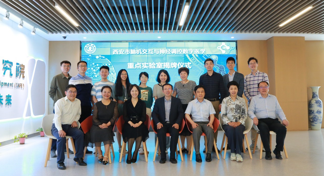 活动当天还举行了西安市脑机交互与神经调控数字医学重点实验室揭牌仪式。西安市脑机交互与神经调控数字医学重点实验室由3003新葡官方网站、空军军医大学和西安市第一医院联合申请成立,揭牌仪式由医工交叉研究所党支部书记陶唐飞主持,高端装备研究院院长陈雪峰发表致辞,医工交叉研究所学术带头人、西安市脑机交互与神经调控数字医学重点实验室主任徐光华教授介绍实验室情况,空军军医大学西京医院康复科主任袁华、西安市第一医院神经内科主任吴松笛、西安市第一医院眼科医疗美容门诊部主任郅瑛同陈雪峰院长、徐光华教授、陶唐飞书记共同揭牌,陈雪峰院长为两家联合单位授牌。