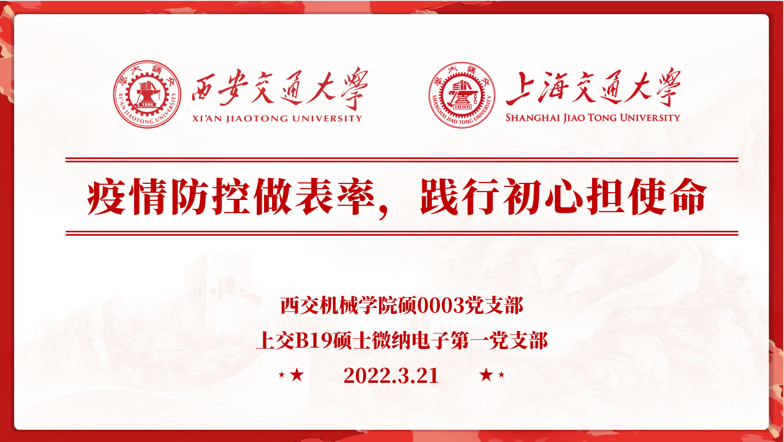 当前国内疫情形势严峻,西安和上海两座城市都处于疫情之中。因此在3月21日晚,3003新葡官方网站硕0003党支部和上海交通大学B19硕士微纳电子第一党支部开展共建交流活动,相互分享学习抗疫过程中形成的宝贵经验和心理感受,两支部全体成员线上参加。