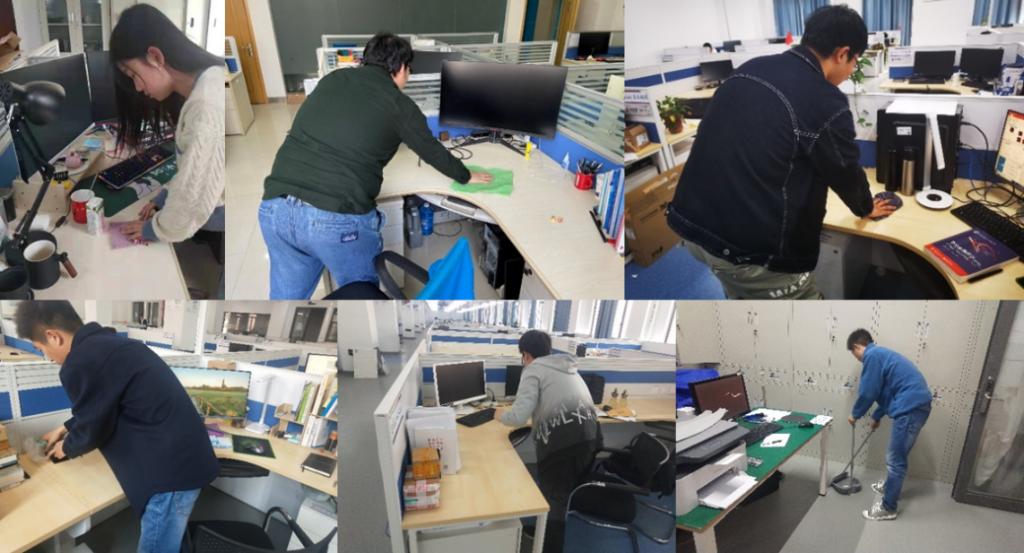 在这次爱国卫生活动中,支部各位同志对于自己所在校区的教研室以及实验室的各个区域都进行了仔细打扫,地面清扫拖净,不留任何死角,做到无纸屑、果壳、碎末等废弃物;桌椅、书架、电脑等设备设施擦拭干净,做到无灰尘,无污渍;对于室内物品,以及拖布、扫把等卫生用品使用完毕后清洗干净,摆放整齐有序。