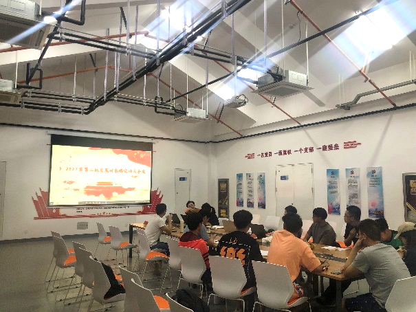 最后,由支部书记朱倪黎同志主持召开硕9002班党支部大会,组织委员曹国锋同志进行会议记录。此次会议正式党员同志应到9人,实到9人,无人缺席,采用“活动参与度评分考核+答辩评优”的方式确定2021年第二批入党积极分子转发展对象的成员名单。会议中7名符合发展要求的入党积极分子首先进行自我陈述,就个人基本情况、入党动机、确定为积极分子后学习、生活上的表现等方面进行阐述,并开展自我批评。之后是现场问答环节,由其他正式党员对该同志进行关于党的基本知识、时事评述和个人汇报情况三个方面提问,并根据其综合表现进行无记名评分。答辩结束后,由曹国锋同志进行统分排序,确定最终的发展对象名单并公示。
