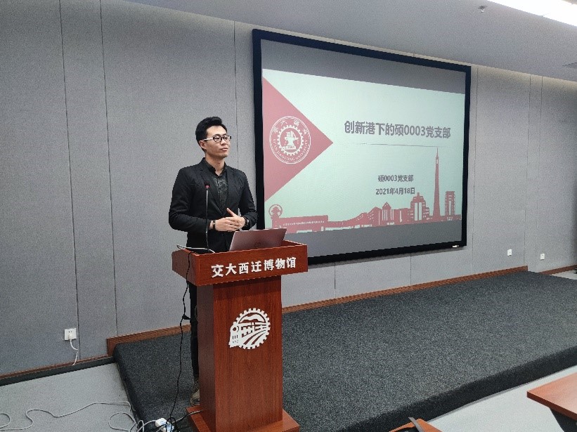 随后3003新葡官方网站硕0003党支部书记李希晨介绍了创新港以及高端装备研究院的基本情况,期待本科生同学以后来到创新港,并对硕0003党支部的基本情况、思想建设活动等进行了介绍。