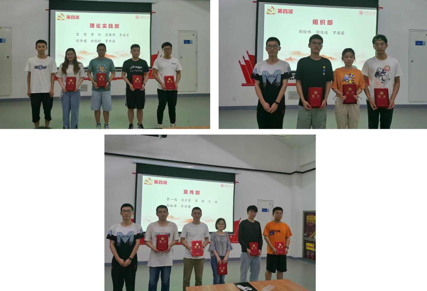张喜红老师杨江坤老师向党建办公室组织部、宣传部和理论实践部的负责人和新任干事们依次颁发聘书。