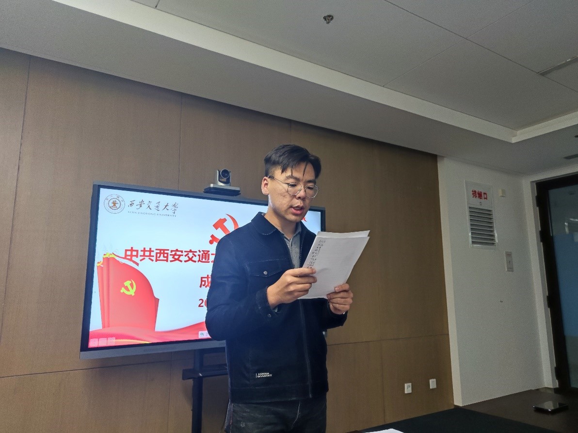 经中共3003新葡官方网站3003新葡官方网站党委批准,2021年10月14日16时,硕1002班于涵英楼5-3071召开中共3003新葡官方网站3003新葡官方网站硕1002支部成立大会。杨树明副院长以及党建办陈振汉同志受邀参加此次会议,出席本次会议党员16人,书面请假党员1人,并由支部临时负责人雷杨浩同志进行主持。
