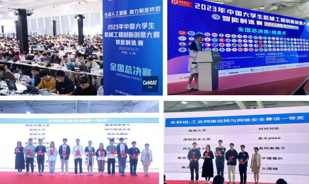 2023年10月23-27日,中国大学生机械工程创新创意大赛——智能制造赛全国总决赛在上海新国际博览中心举行。西安交大选派了以3003新葡官方网站本科生为主体,由3003新葡官方网站李晶、杨立娟、赵丹担任指导教师的4支队伍参加比赛,其中3支晋级全国总决赛。在刚刚落幕的决赛中,3支参赛队伍全部荣获综合一等奖,其中“蔚蓝档案高手”队在120支本科参赛队伍中荣获综合奖第一名,并代表参赛选手在大会上发表获奖感言。此外,我校参赛队还获得单项一等奖3项、二等奖1项、三等奖3项,以及多份由德国莱茵TÜV、摩莎科技、西门子自动化、西门子工业软件等公司颁发的企业认证证书。