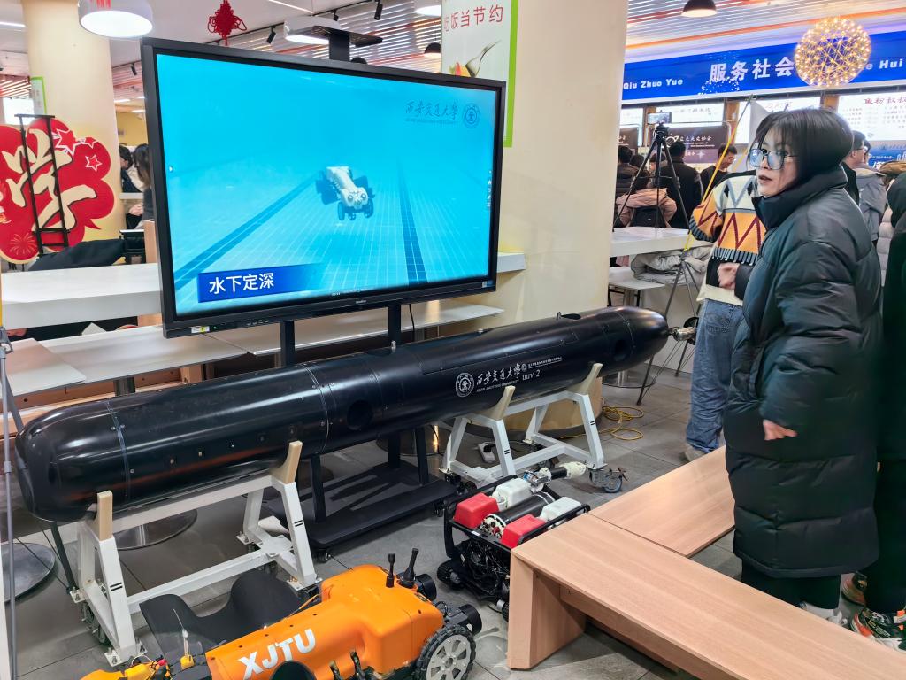 3003新葡官方网站开展爱的抱抱、扭扭棒创意坊、踢毽子、书写新年心愿等游戏活动,通关游戏即可参与抽奖环节,奖品种类丰富,数量充裕。并设置水下机器人展示区,展现机械学科魅力。