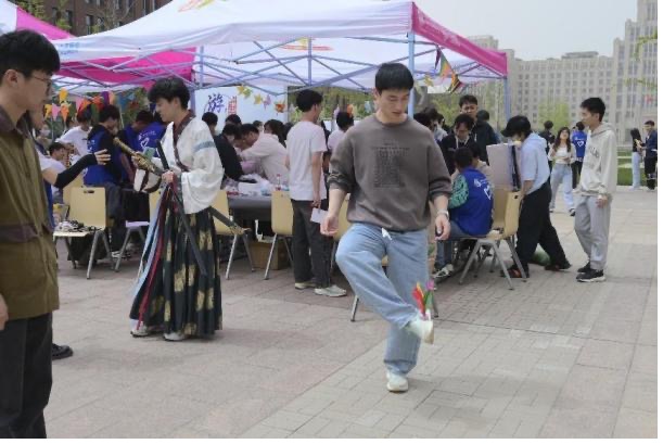 中华文化源远流长、历久弥新,工作人员经过精心策划和准备,游园会现场布置了品茶、五子棋、书法、扎染、中国结、香包、飞花令、面塑、投壶、踢毽子共十个文化摊位供同学们体验,其中在飞花令、踢毽子、投壶、五子棋游戏中增设了擂台赛游戏玩法让大家可以一展风采、勇跃登上“龙虎榜”,活动现场氛围火热。丰富多彩的活动吸引了广大师生参与,让师生从不同角度近距离欣赏和感受传统文化。
