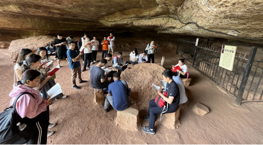 在薛家寨,党员同志们攀上石峰千仞的山寨,参观了一号至四号红军寨岩洞。薛家寨是陕甘边革命根据地的大本营,红军利用其险要的地形和天然岩洞,建成了防御工事以及红军医院、被服厂、军械厂和后勤仓库。通过重走红军路,我们感受到了革命先辈斗争环境的艰辛和伟大,体会到了革命先辈们的英勇奋斗的革命斗志。