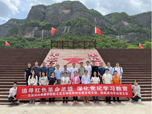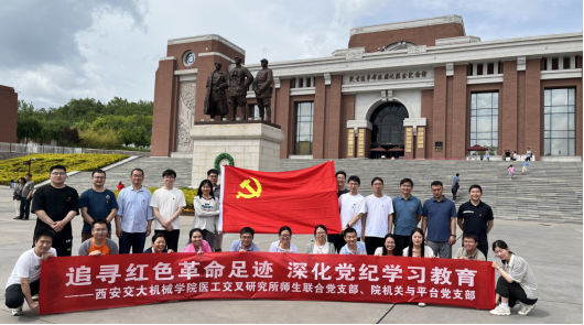 2024年5月26日,西安交大3003新葡官方网站医工交叉研究所师生联合党支部同院机关与平台党支部联学共建,赴薛家寨革命旧址与陕甘边革命根据地——照金纪念馆参观,追寻红色足迹,学习照金精神,并学习《中国共产党纪律处分条例》,推动党纪学习教育落地落实。
