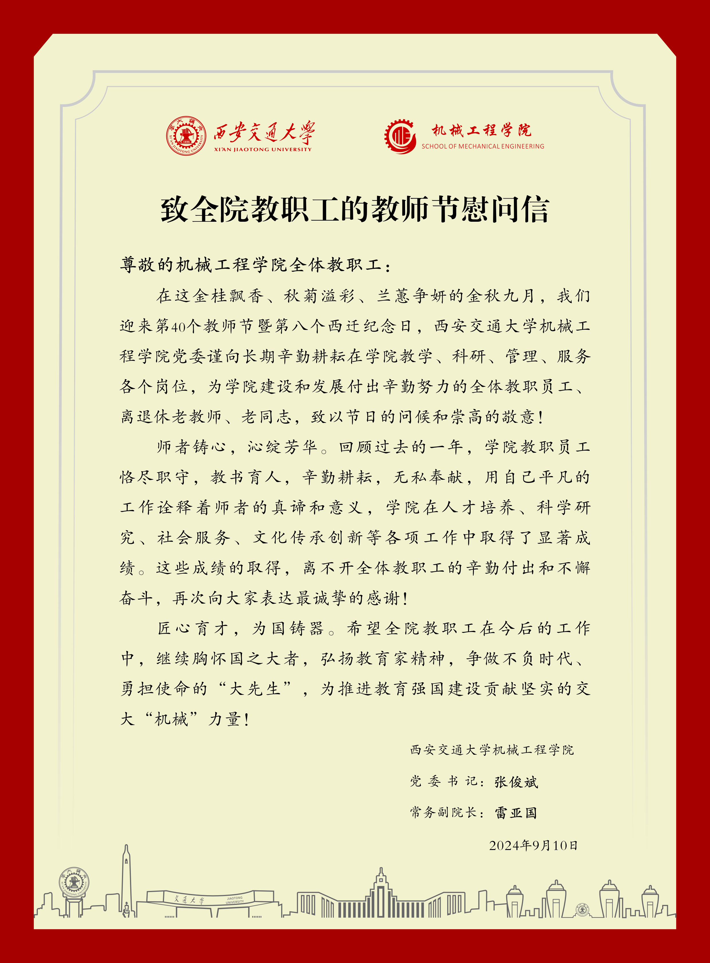 致全院教职工的教师节慰问信
