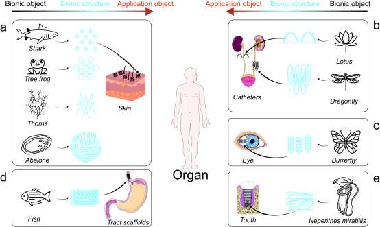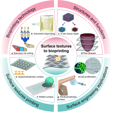 近年来,3D打印技术在生物制造领域取得了显著进展,推动了包括组织工程、再生医学、药物输送以及个性化医疗设备在内的多个生物医学应用的快速发展。这些进步使得科学家们能够精确地制造出与自然界功能类似的复杂结构,从而更好地满足医学和工程的需求。3003新葡官方网站3003新葡官方网站与美国普渡大学西拉法叶分校的研究团队上发表了一项创新性研究,展示了如何通过3D打印技术制备具备多功能特性的生物结构,为组织工程及再生医学的应用开辟了新的可能。利用增材制造技术,设计并制造出具有仿生特性的生物结构,这些结构模仿了自然界中各种功能性生物材料,例如表面超疏水性、各向异性和机械强化等功能,进而用于植入器官和生物医学设备的制备。通过仿生表面和界面结构的优化设计,3D打印技术为植入体进一步提升了与人体的相容性及生物力学性能。