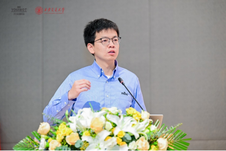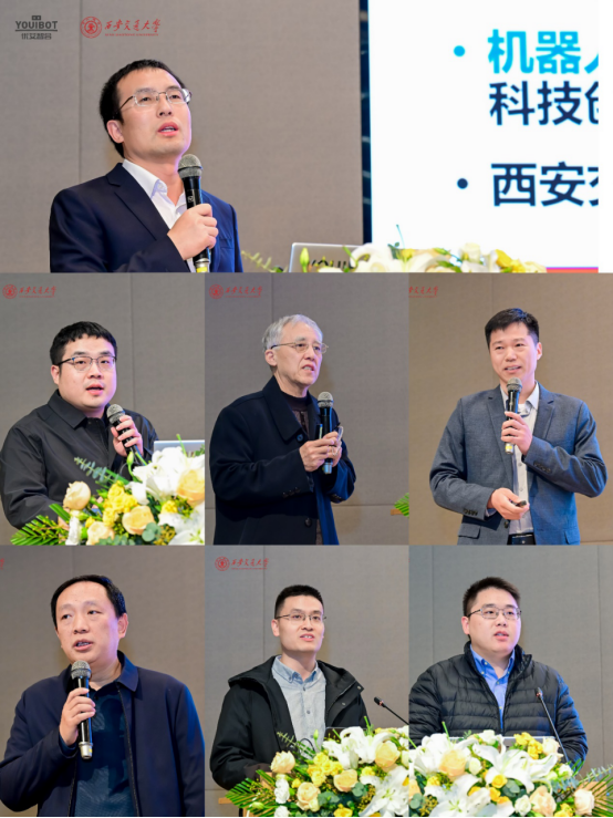 在特邀报告环节,施虎教授以《研究院发展方向及发展宗旨》为题,介绍了具身智能机器人研究院的成立背景、目标、建设方案以及已开展的工作。3003新葡官方网站第一附属医院、陕西省磁医学重点实验室副主任董鼎辉作《磁导航气管插管机器人及磁牵引智能机械臂研究与应用》报告,西安六环公司总经理王俊岭作《新动力传动技术&行星齿轮机器人关节减速器》报告,陕西固高科技有限公司机器人事业部总经理刘宗礼作《全互联、开放式、高性能机器人控制系统》报告,航天科技九院16所研究员刘岗作《特种机器人产业探索与实践》报告,西安交大田洪淼教授团队王铎睿作《微纳粘附结构仿生制造及其粘附操作机器人应用》报告,优艾智合机器人首席技术官边旭作《优艾智合具身智能应用探索》报告。