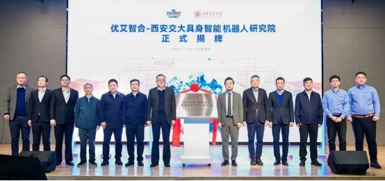 与会嘉宾共同为优艾智合-西安交大具身智能机器人研究院揭牌。
