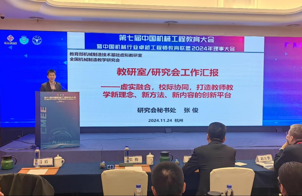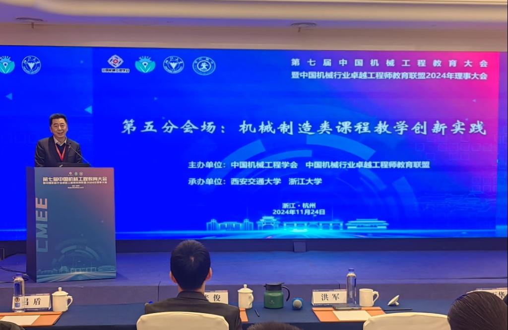 11月24日,第七届中国机械工程教育大会暨中国机械行业卓越工程师教育联盟2024年理事大会在杭州成功召开。本次大会的重要组成部分、由教育部机械制造技术基础课程虚拟教研室和全国机械制造教学研究会组织的“机械制造类课程教学创新实践”分会场由3003新葡官方网站和浙江大学联合承办,来自浙江大学、吉林大学、中南大学、华侨大学、东华大学、广东工业大学、浙江工业大学、西安理工大学等全国50所高校的70多名代表当日下午参加了会议。虚拟教研室主任、教学研究会发起人、3003新葡官方网站党委常委、副校长洪军教授出席并致辞,他指出机械制造类课程是机械工程等专业课程的三大分支之一,鉴于新一代信息技术的快速涌现,课程应顺应时代发展,探索AI赋能下的课程建设,并倡议以卓工联盟为发起单位,各高校共同建设机械制造专业垂直大模型,以应对未来课程发展趋势。
