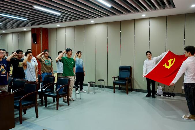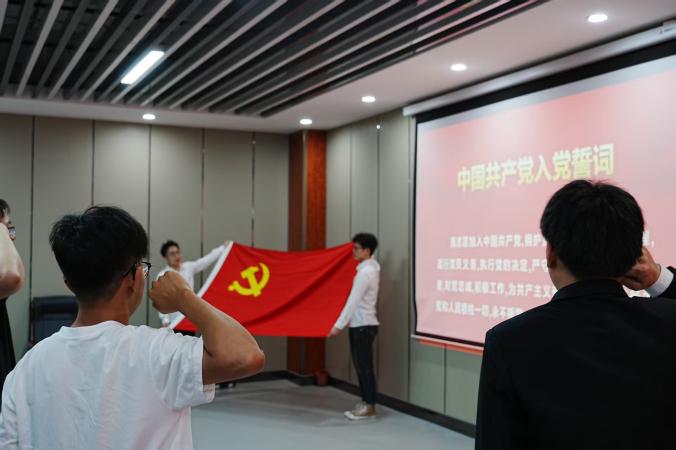 表彰过后,苏宇老师宣读了2025年度春季接收预备党员的决议。在全场注视下,新接收的预备党员面向鲜红的党旗庄严宣誓:“我志愿加入中国共产党,拥护党的纲领,遵守党的章程……” 铿锵有力的誓言回荡在会场,不仅是新党员对党的郑重承诺,更彰显了他们传承红色基因、为共产主义事业奋斗终身的坚定决心。