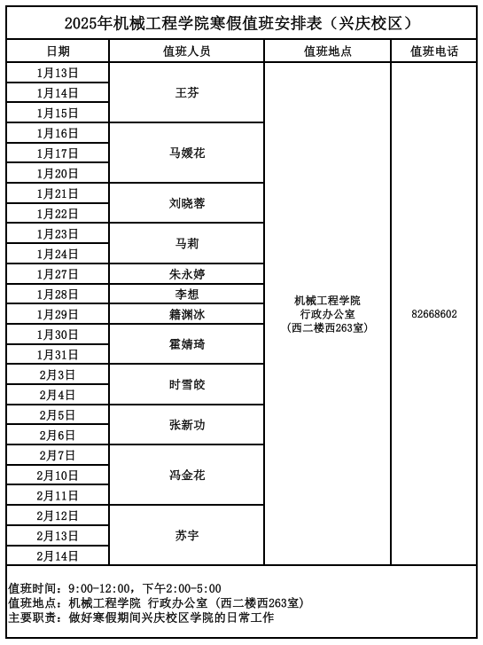 为保障寒假期间(1月13日--2月14日)相关工作的正常开展,满足学院广大师生假期中的用印需求,寒假期间,学院印章集中在兴庆校区西二楼学院行政办(西263)使用,学院已安排专人值班。