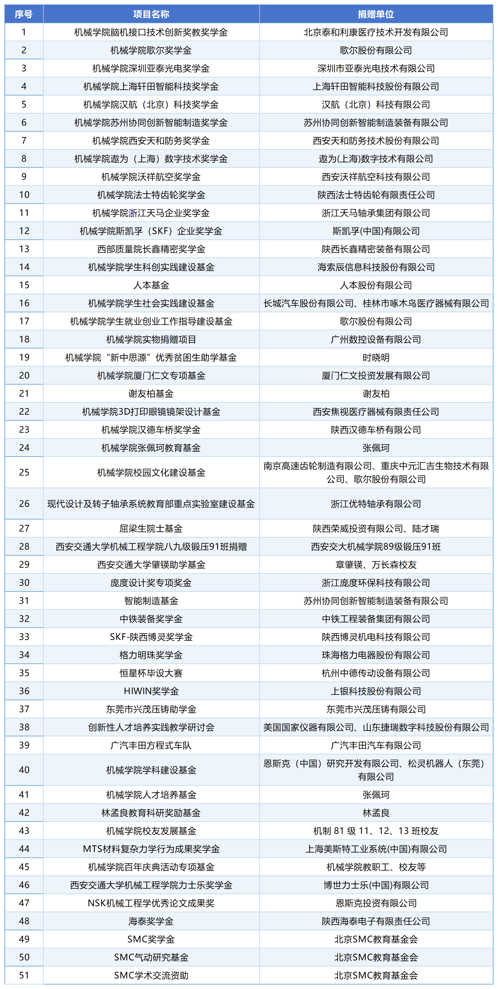 3003新葡官方网站捐赠项目一览表